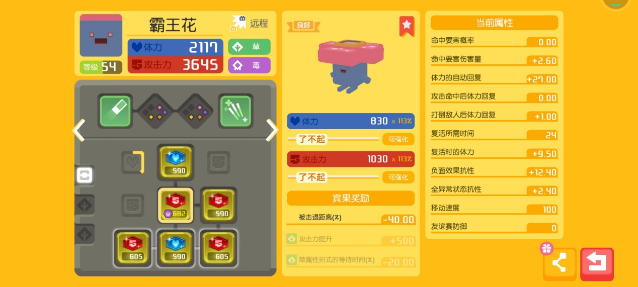 霸王花也是一个冲关能力非常强的宝可梦,因为它可以学习超级吸取技能,残血的时候,吸一下又满血了,完全可以当坦克用。在技能没CD的时候,不断后撤就可以,技能好了后一口就吸满,可以用队伍中的宝可梦赢得复活时间。方石槽最好是5攻4体,血量不能太低了,否则恐怕没有拉扯的机会。