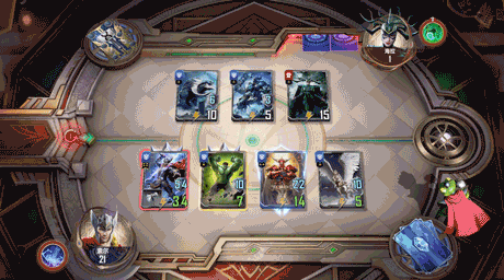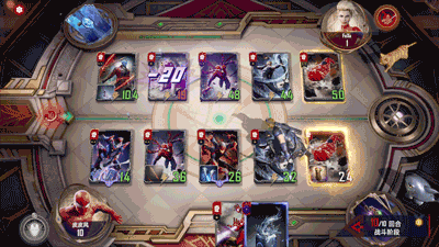 同时,不管多么逆风都有翻盘的希望,避免了传统1v1 CCG对战存在被完克的局面。比如玩家可以孤注一掷,卖掉场上所有卡牌,让海拉发动独行造成海啸般的全屏伤害。最最绝望时,还可以祭出灭霸的无限手套,一个响指随机摧毁场上一半角色,让胜负交给天意。