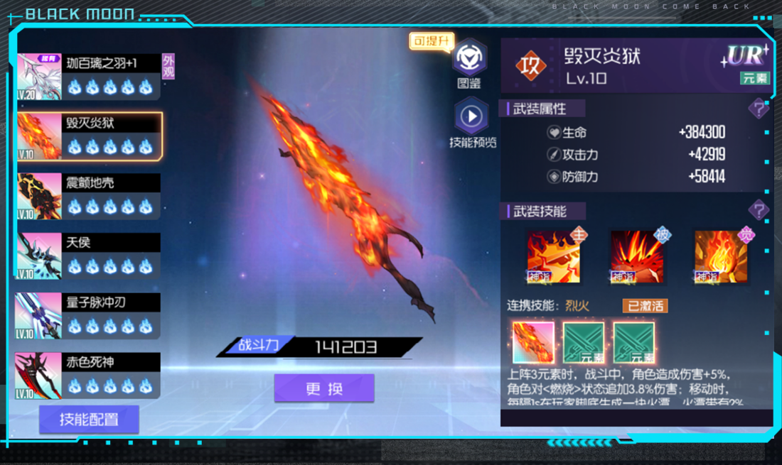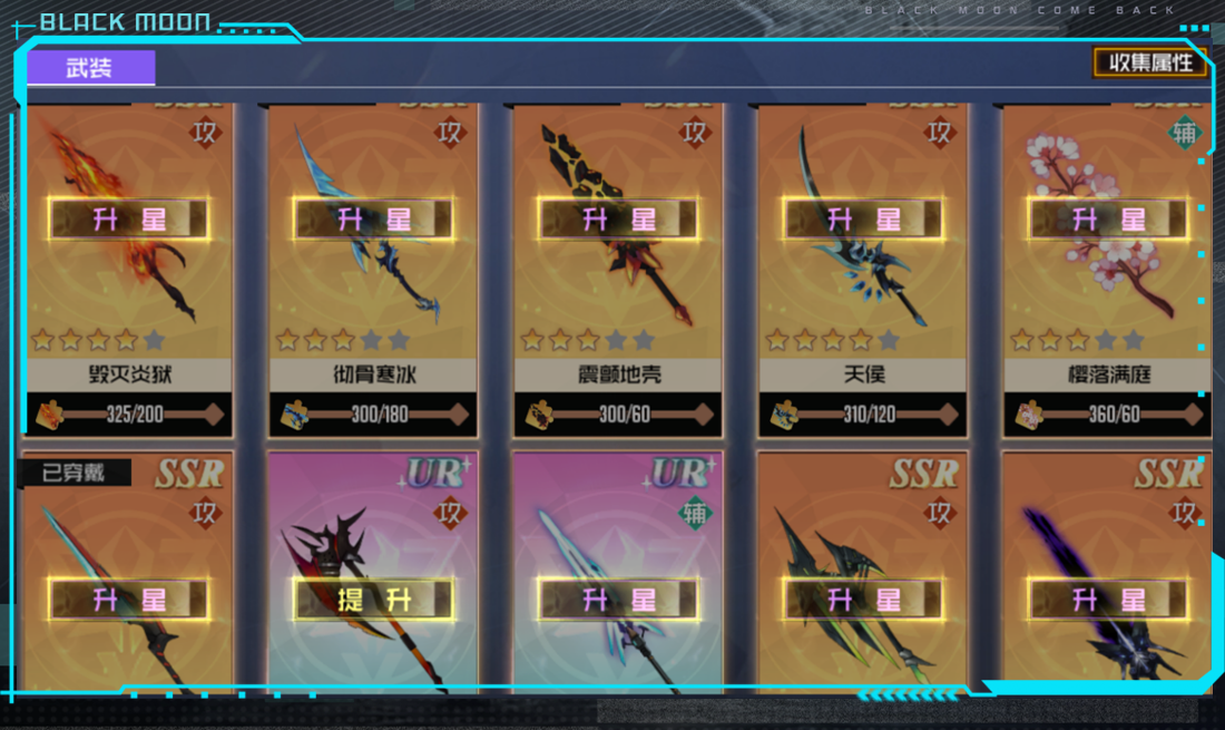 看到这里各位神选者可能不太明白为什么图鉴有什么可了解的呢,听我慢慢道来~黑月的武装图鉴并不单单是收藏作用,还会为角色提供可观的属性,每把武装每一次提升星级,都可以在图鉴中为角色增加属性,星级越高,增加的越多,也就是说,虽然武装只能上阵6把,但是其他获得的武装并不是只能摆放在仓库了哦,依然还是能够为整体战力提升不小的帮助。