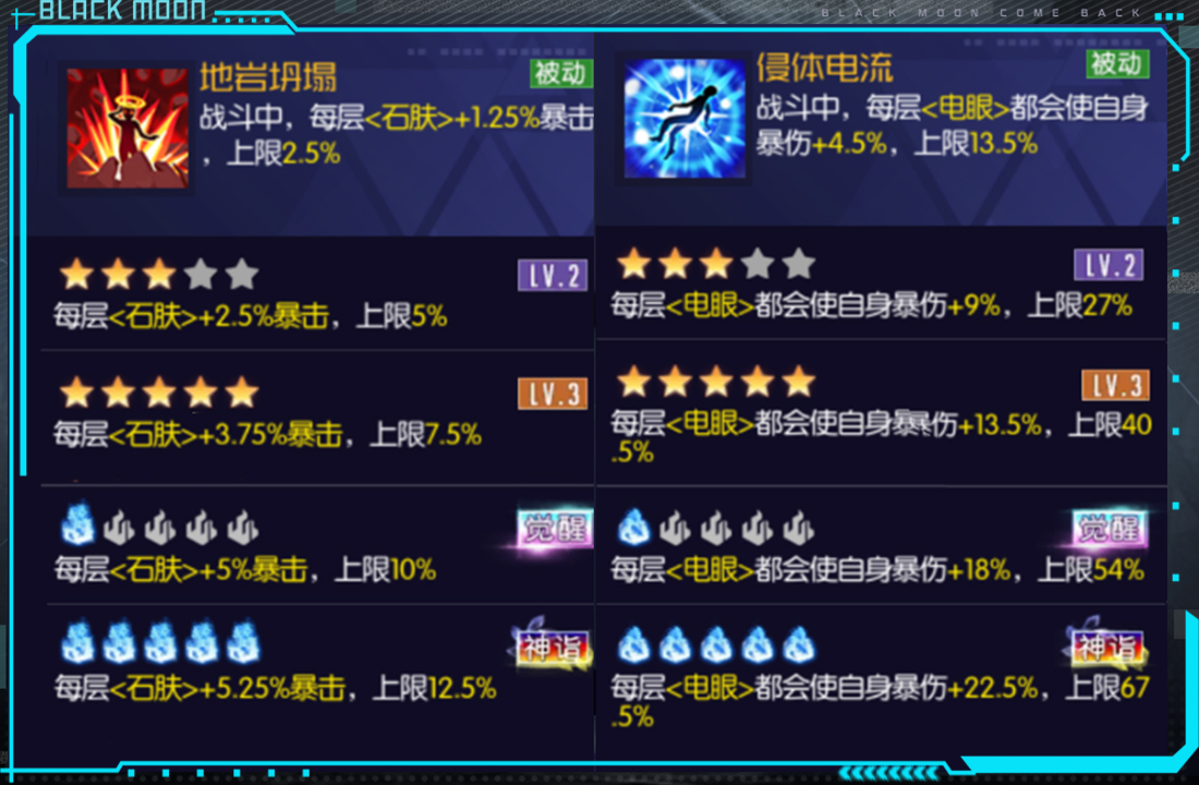 2. 被动技能选择携带震颤地壳和天侯的,这两个被动技能相辅相成,<地岩坍塌>增加暴击,<侵体电流>增加暴伤,外加两个武装的连携技能也有增加暴击暴伤的效果,可谓是非常完美的被动技能