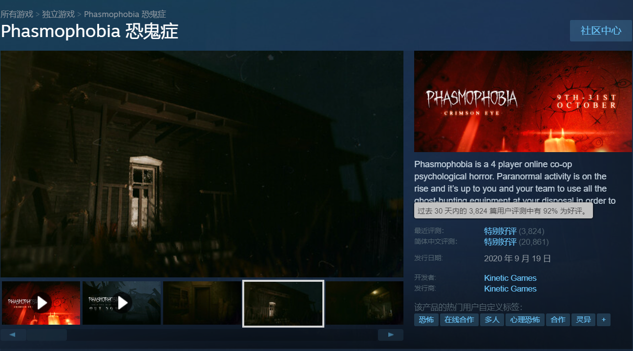 这可能是你玩过最“另类”的一款恐怖游戏了,作为由英国Kinetic Games开发并发行的四人合作恐怖游戏,《恐鬼症》无疑是恐怖游戏中的一个异类。