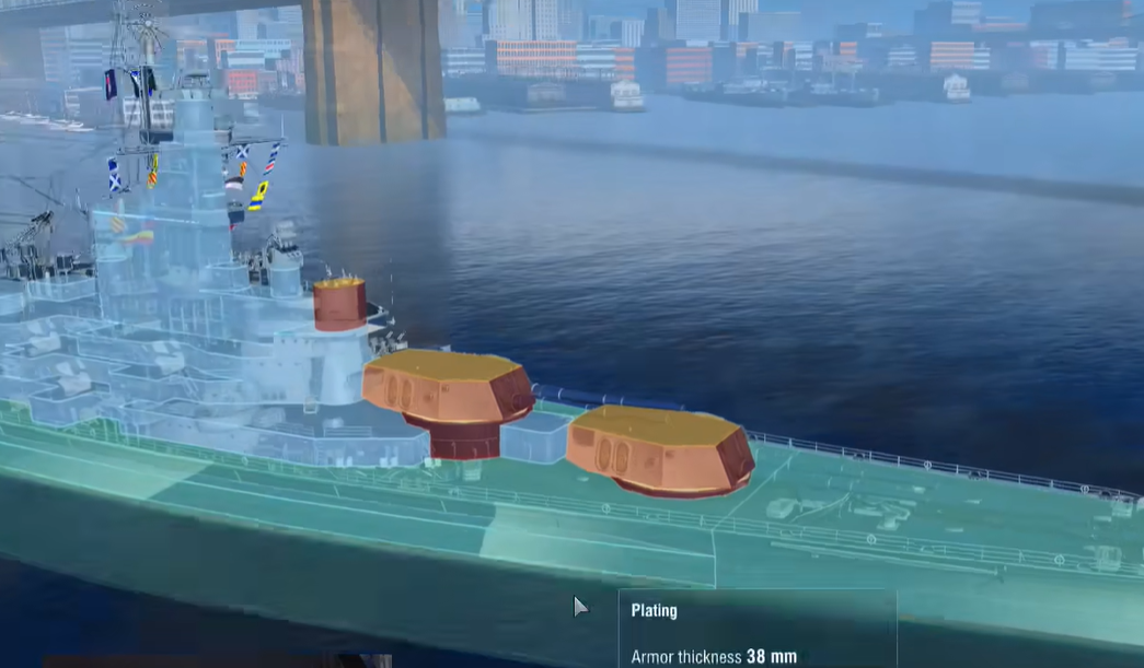 值得一提的是,乔治亚核心舱高度为0,齐平水线,可炮塔顶盖装甲130mm、核心顶板仅炮塔段25mm+轮机段16mm的厚度,特别容易被大口径炮弹碾压,只有护住脆弱侧舷才能避免瞬间大量掉血。