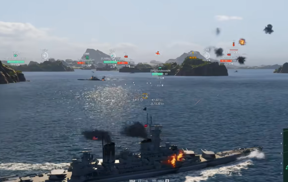如果说装甲是基础,那机动性就是乔治亚的灵魂,它的基础航速为33节,叠上引擎增压、航速旗和默默速行技能,乔治亚甚至能飙到44节的恐速度,妥妥战列舰界的超跑。同时它还有890m转向半径和16.57秒转舵时间,舵效比依阿华更灵活。这种极佳的机动性,能让它在冲锋和转场时更快完成战术动作,还能抢到很多常规战列舰到不了的点位打出奇效。