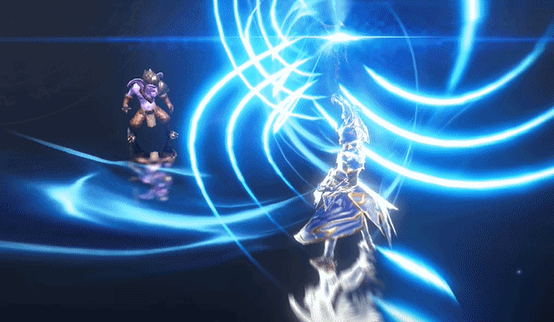 主流技能比如说玩家熟知的黑龙波,最开始的时候效果还不是这样的,做得整体比较虚,显示效果也呈现偏烟雾的状态,识别性会相对较弱一些,除此之外技能的形态我们感觉也不是很好,所以我们通过每个版本的测试,对这些技能进行调整和修改,黑龙波这个技能光是龙的模型,我们就修改了4~5次。通过这样不断地调整与修改,才逐渐形成现在大家认同感比较强的一个黑龙波。