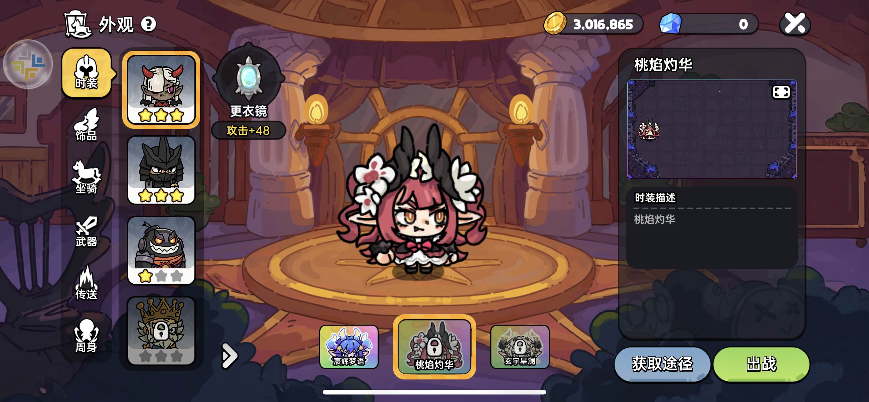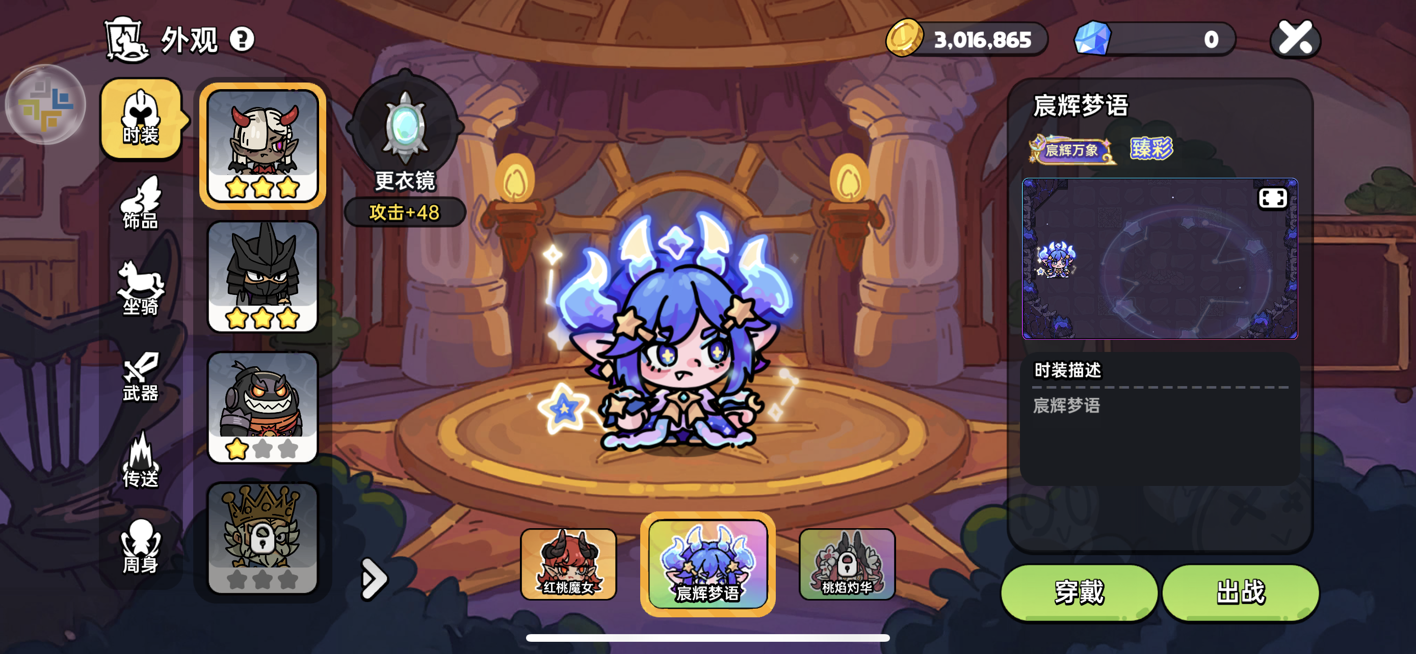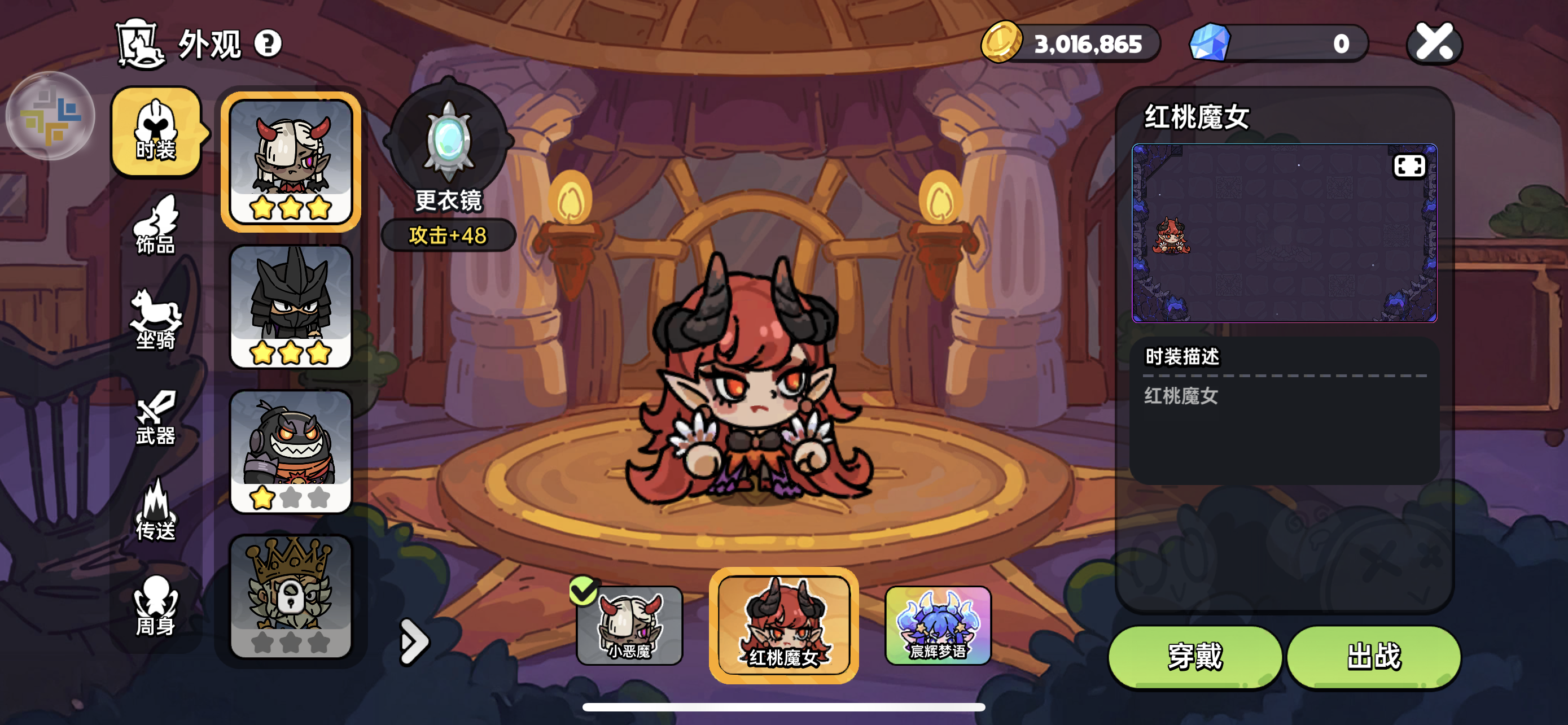 PS:更衣镜,根据已解锁的时装数量提供属性值。每解锁1件时装,攻击+1.5(上限90),英雄基础时装不计入在内。