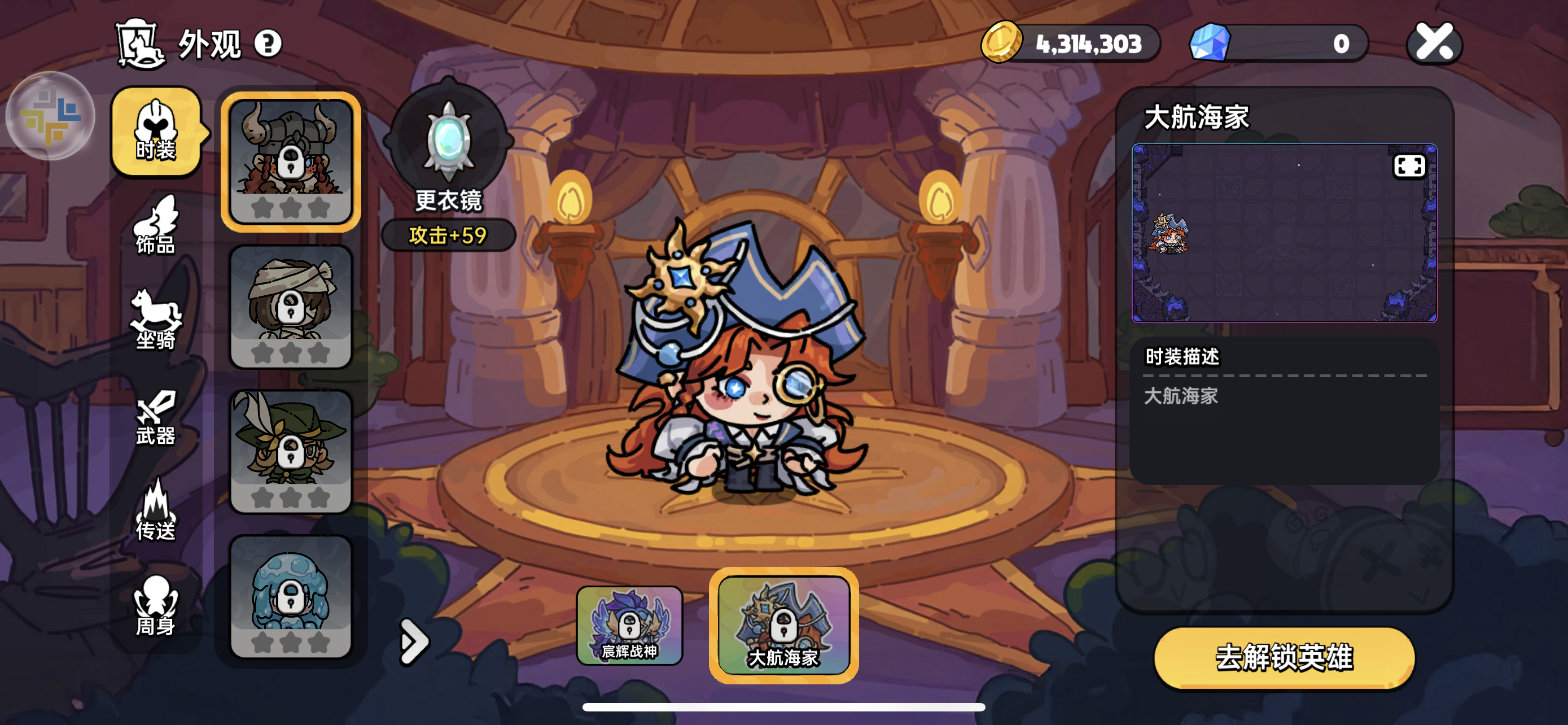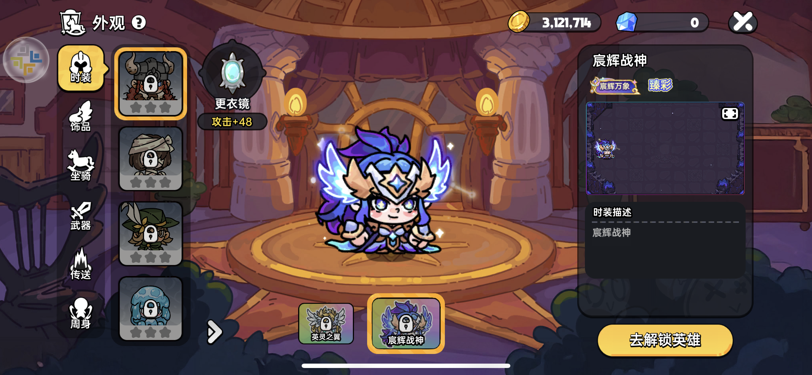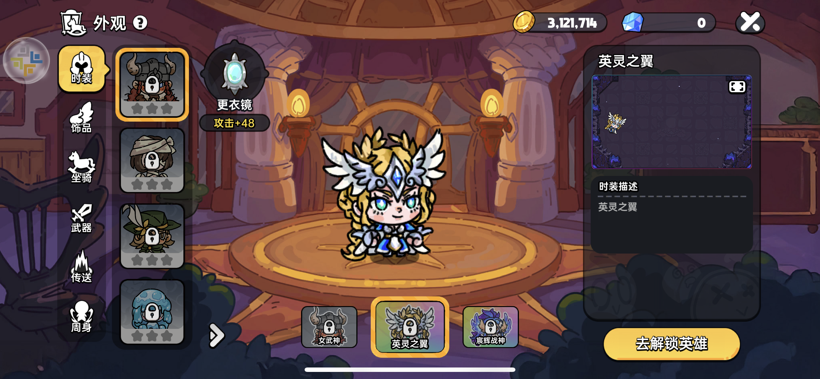 PS:更衣镜,根据已解锁的时装数量提供属性值。每解锁1件时装,攻击+1.5(上限90),英雄基础时装不计入在内。