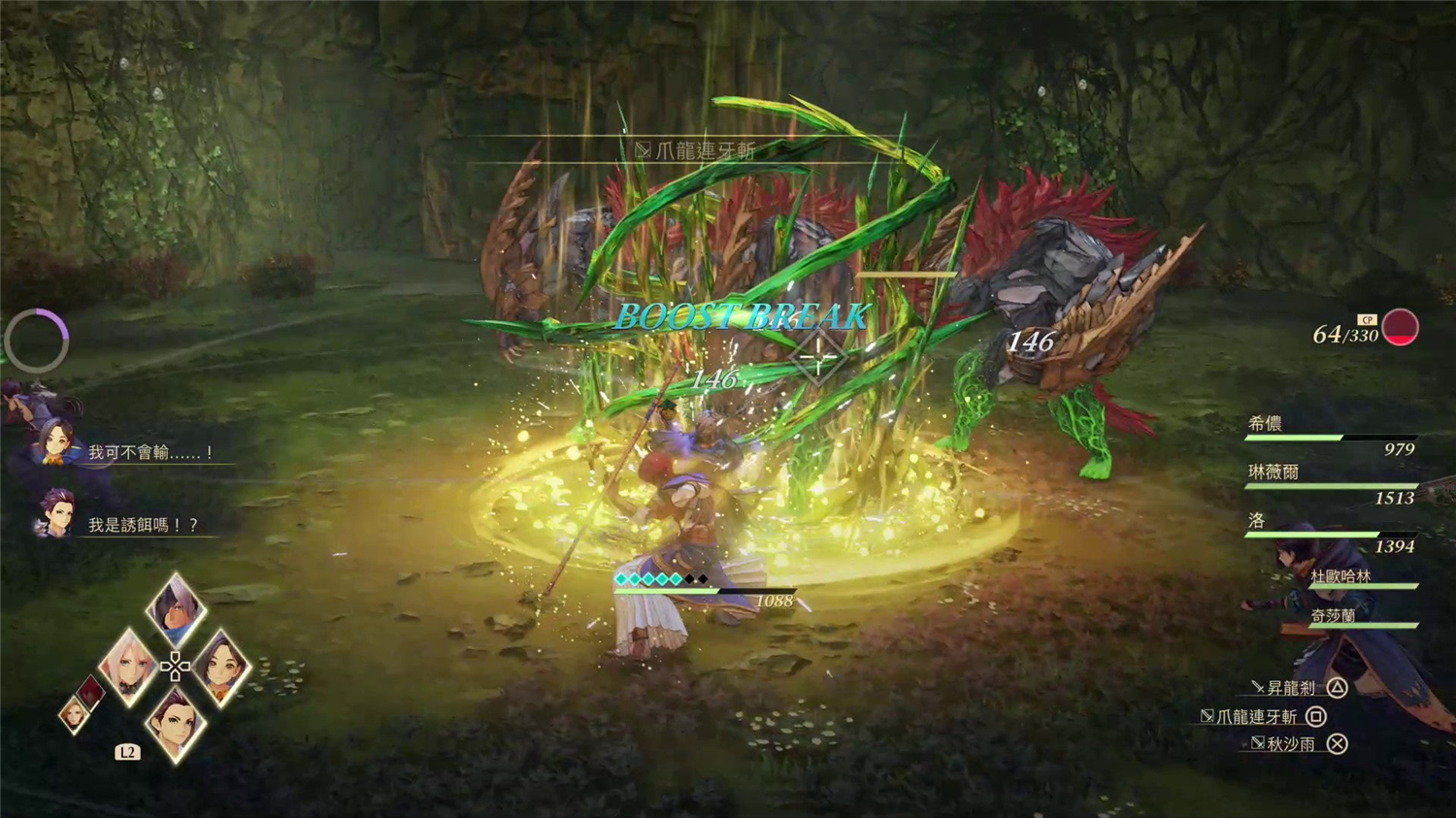 博士还发现:在《破晓传说》中,每当我们击破一个敌人后,只要按“R1”普通攻击,那么角色就会自动瞬移至下一个敌人那里攻击,而且攻击动作就是闪避反击的动作,如果你控制的是近战角色,那么这个衔接格外的丝滑,贯穿力也不错!