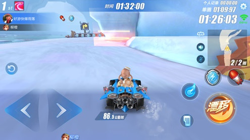 上层赛道前方会出现一个小断层,这个要特别注意,车辆靠右冲过去,如果靠左则会直接掉落到水里。