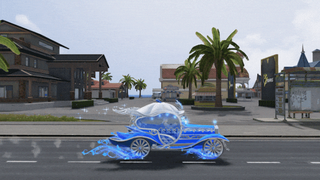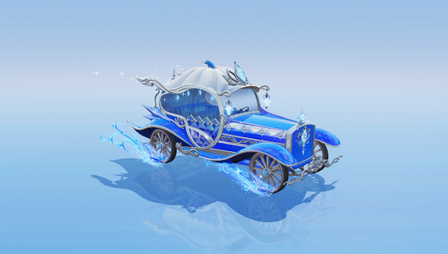 马车上点缀着蓝宝石和金色的花纹,挂灯闪烁着白色的光芒,车轮转动留下湛蓝色的光痕,奢华十足。