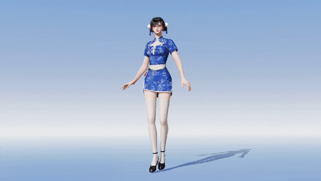 蓝底白花旗袍缀以盘扣流苏
