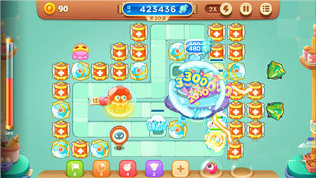 要想在糖果赛中跑的更远,完善且精心的炮塔配置才是取胜的关键!阿波在全图建设25-35座正电塔,建成以正电塔为主体的炮塔攻击群;建设群体减速炮塔雪球8-10座,能迅速降低怪兽们的行进速度,从而可以有效增强正电塔的输出频率;在地图边缘地带建设超视距导弹炮塔15-20座,能极大的增强全图炮塔的火力输出,无处不在的火力让怪兽们无处可藏身哟!