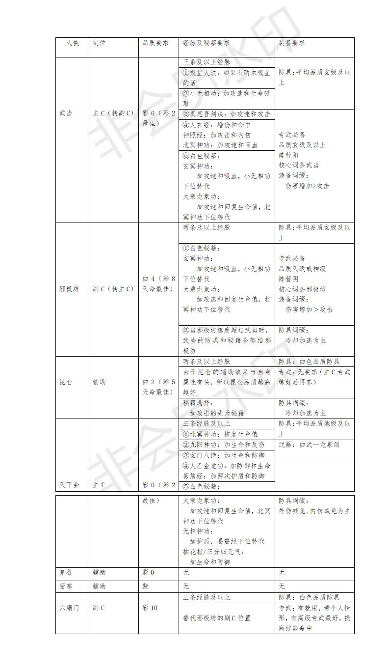 三. 结语:本次攻略主要面对的是蜀山玩家,但同样适用于极限武当的玩家,武当玩家只需要练一个极限蜀山就行(蜀山一队,武当和六扇门一队)。如果想说六扇门单C一队的话,也不是不可行,但是远没有阴阳主C带来的体验更加舒适。之所以弃武当养邪极坊,一是因为在苗疆(水木)、夺宝、天机楼(水木塔),需要更强势的邪极坊去占取资源优势,二是因为邪极坊本身的强度比起武当更加适合后续章节的推图(元卡除外),三是在PK场并不是平民玩家和微氪玩家的角逐场,综上所述,邪极坊的优先级是很高的。新的元大侠是多数玩家养不起的,何不如打造一个符合自身的强队队伍?(虽然邪极坊略丑,但是还有皮肤可以挽救一下,希望美术给力点)。