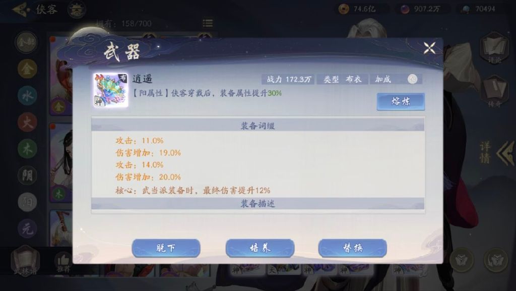 两名主输出(比如武当派,蜀山派,邪极坊)武器神阶洗好双伤害增加双攻击加成以后可以开始把洗炼资源往防具洗炼倾斜。