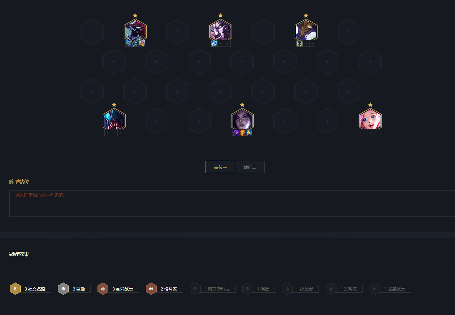 正常情况下8人口阵容成型少上一个名流即可,但是如果有变异转属性也比较合适就可以先下掉巨像开7变异,或者加里奥不来或者是1星可以先上猪妹和蔚凑4斗士,当然最完美还是上9开出7变异2巨像。