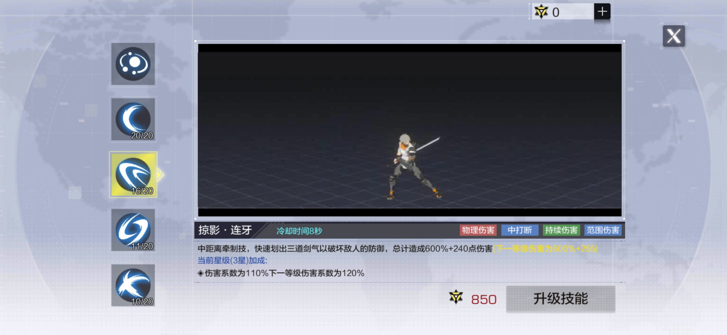 游戏中的人物并不是很多,根据品质来分的话也只有一个S级别的人物,而且还是一个攻击速度比较慢伤害高的那种人物,其实我是不太喜欢,还是喜欢那种快速攻击的人物啦,目前来说呢,人物并没有可以获取的地方,只能根据任务进行开启,但是我卡在那了,所以没法获得行的人物啦。游戏中人物也可以进行升级的,包括技能,不过需要消耗材料,而且还是通用的,考虑清楚在升级呀,还可以进行升星的,不过很简单,但是到了后期就不简单啦。技能也可以进行观看的,还是挺帅气的呢。