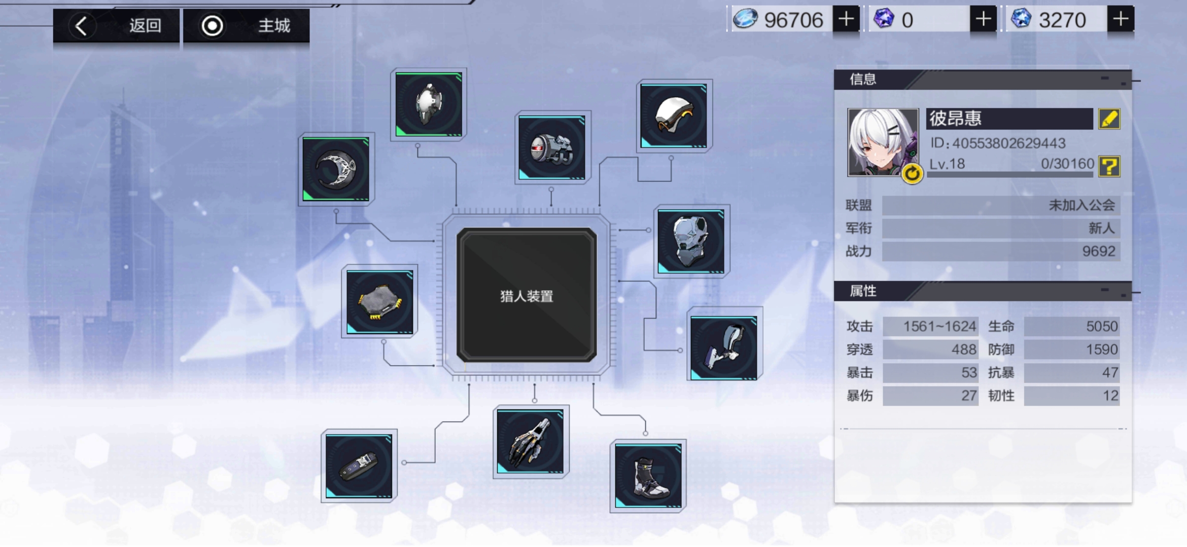 最后要说就是个人信息,在这里可以看到很多自己的信息,包括一些基本的属性啦,还可以更改名字之类的,并且可以观看装备的,不过感觉用处不是很大呢。