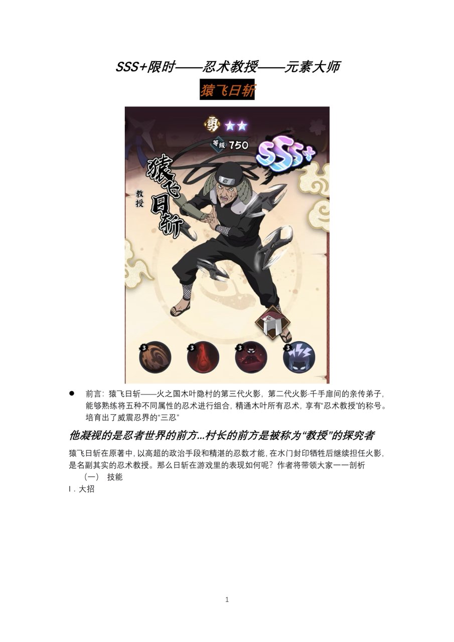 前言:猿飞日斩--火之国木叶隐村的第三代火影,第二代火影·千手扉间的亲传弟子,能够熟练将五种不同属性的忍术进行组合,精通木叶所有忍术,享有“忍术教授”的称号。培育出了威震忍界的“三忍”