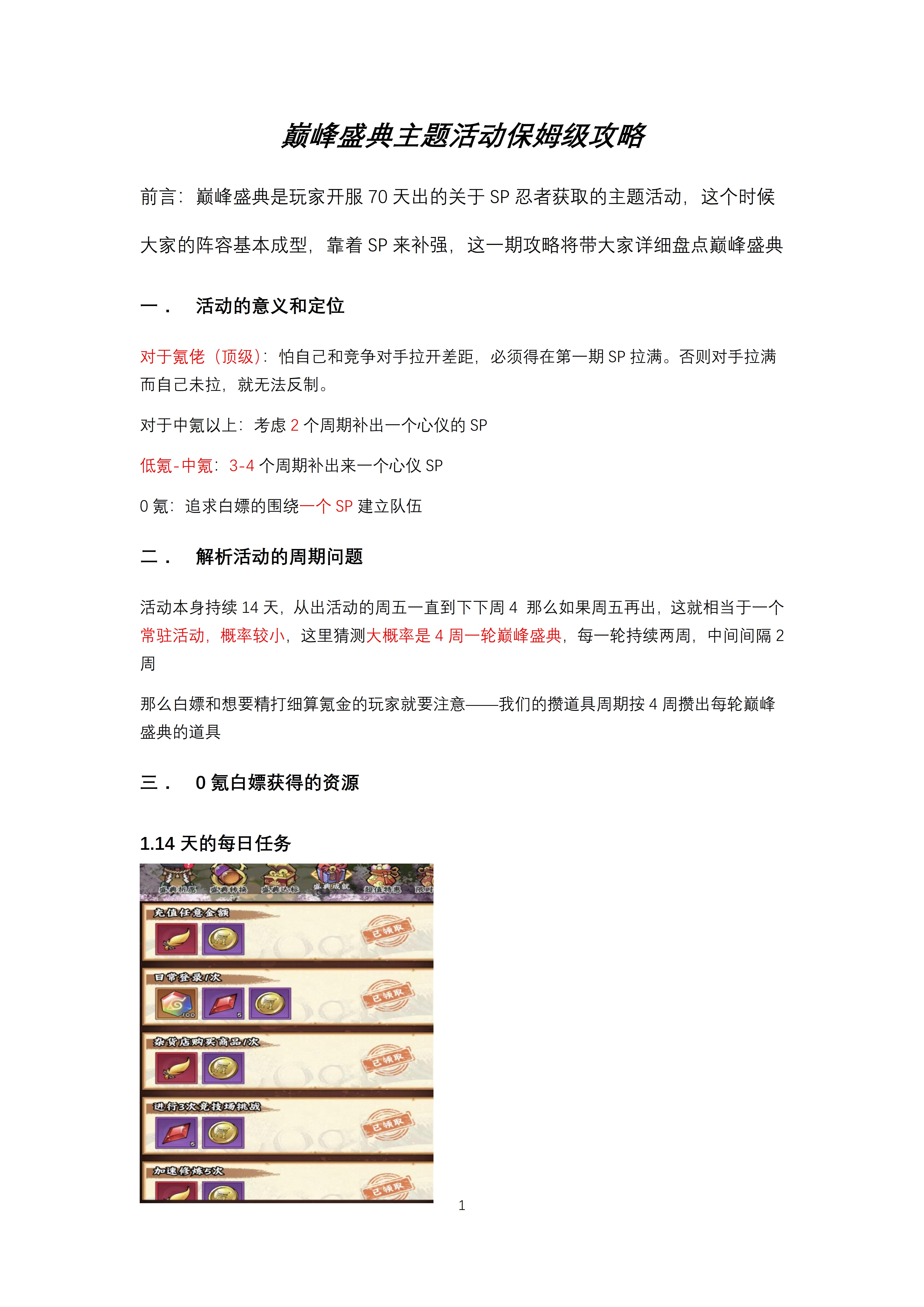 前言:巅峰盛典是玩家开服70天出的关于SP忍者获取的主题活动,这个时候大家的阵容基本成型,靠着SP来补强,这一期攻略将带大家详细盘点巅峰盛典!!!!!!!!!!!!!!!