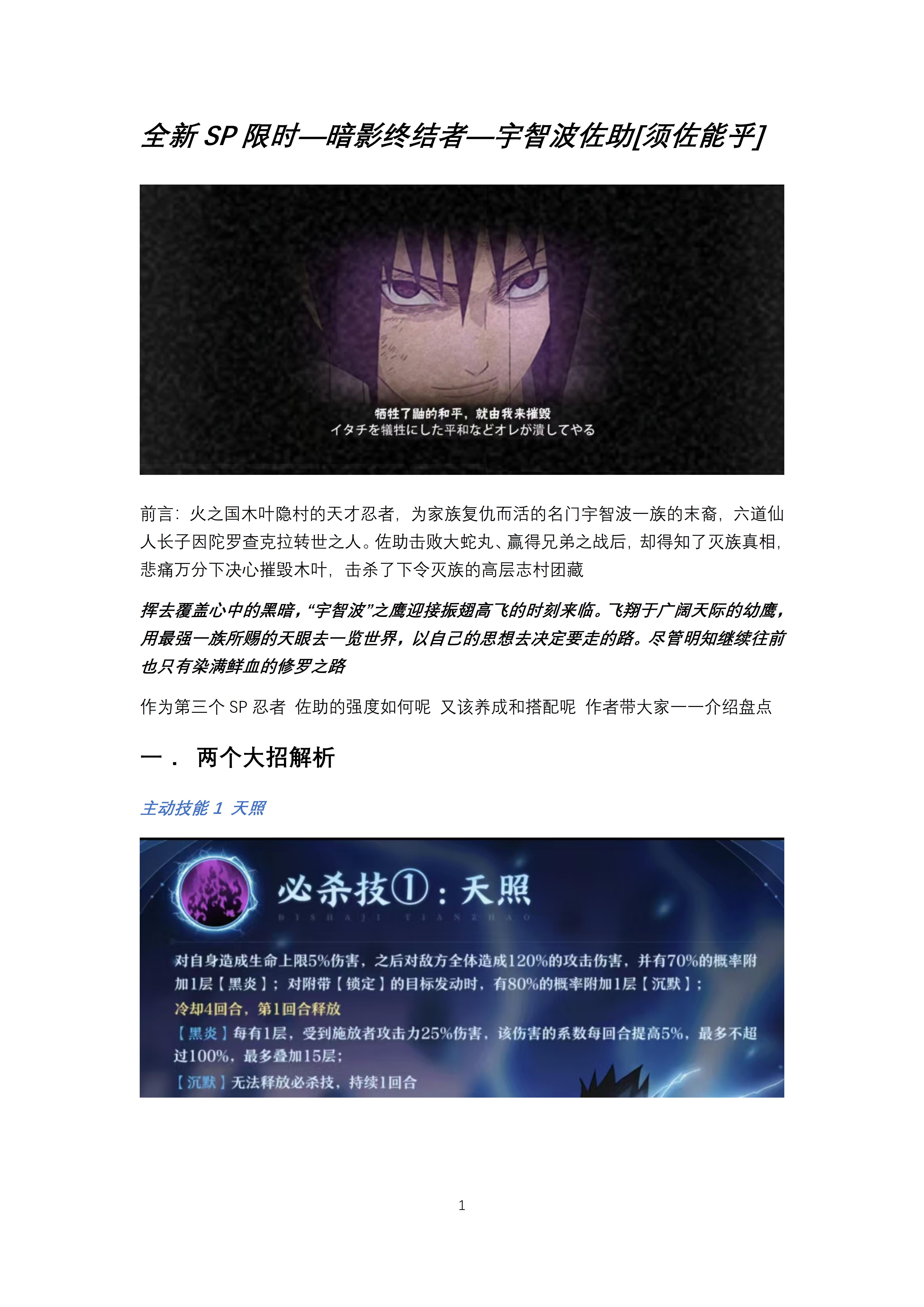 作为第三个SP忍者 佐助的强度如何呢又该养成和撘配呢 作者带大家一一介绍盘点