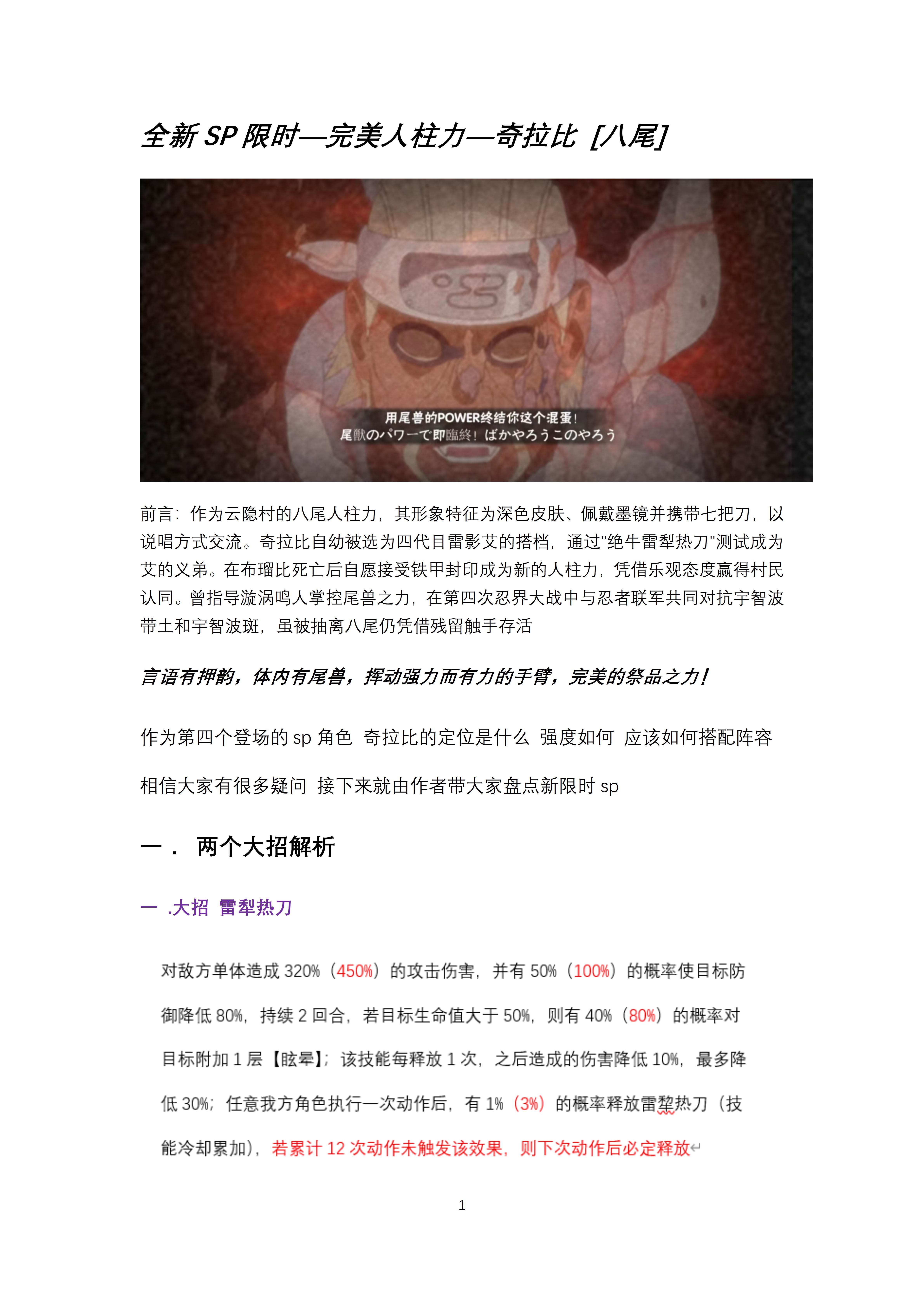 前言:作为云隐村的八尾人柱力,其形象特征为深色皮肤、佩戴墨镜并携带七把刀,以