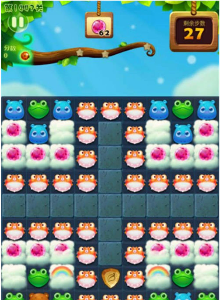 开心消消乐1447关气鼓鱼消除云层,这一关主要任务是27步之内收集62颗宝石。开局消除气鼓鱼就可以迅速消除云层收集宝石。激活魔法石带动消除气鼓鱼消除云层。消除云层激活星星瓶子,然后星星瓶子和气鼓鱼交换。下面我们一起来看一下开心消消乐1447关的通关攻略吧。
