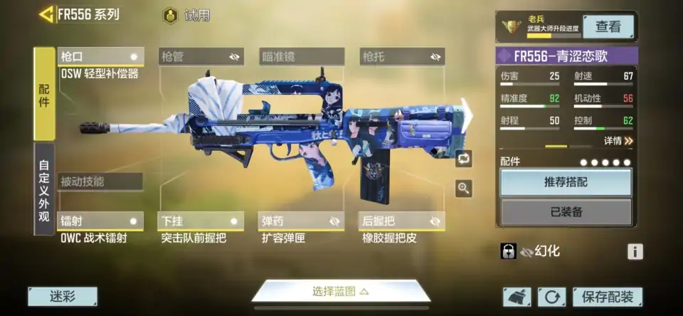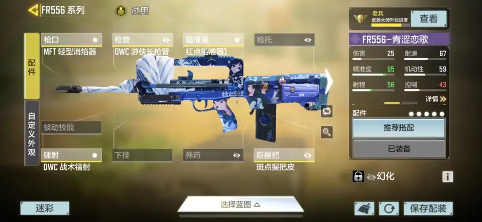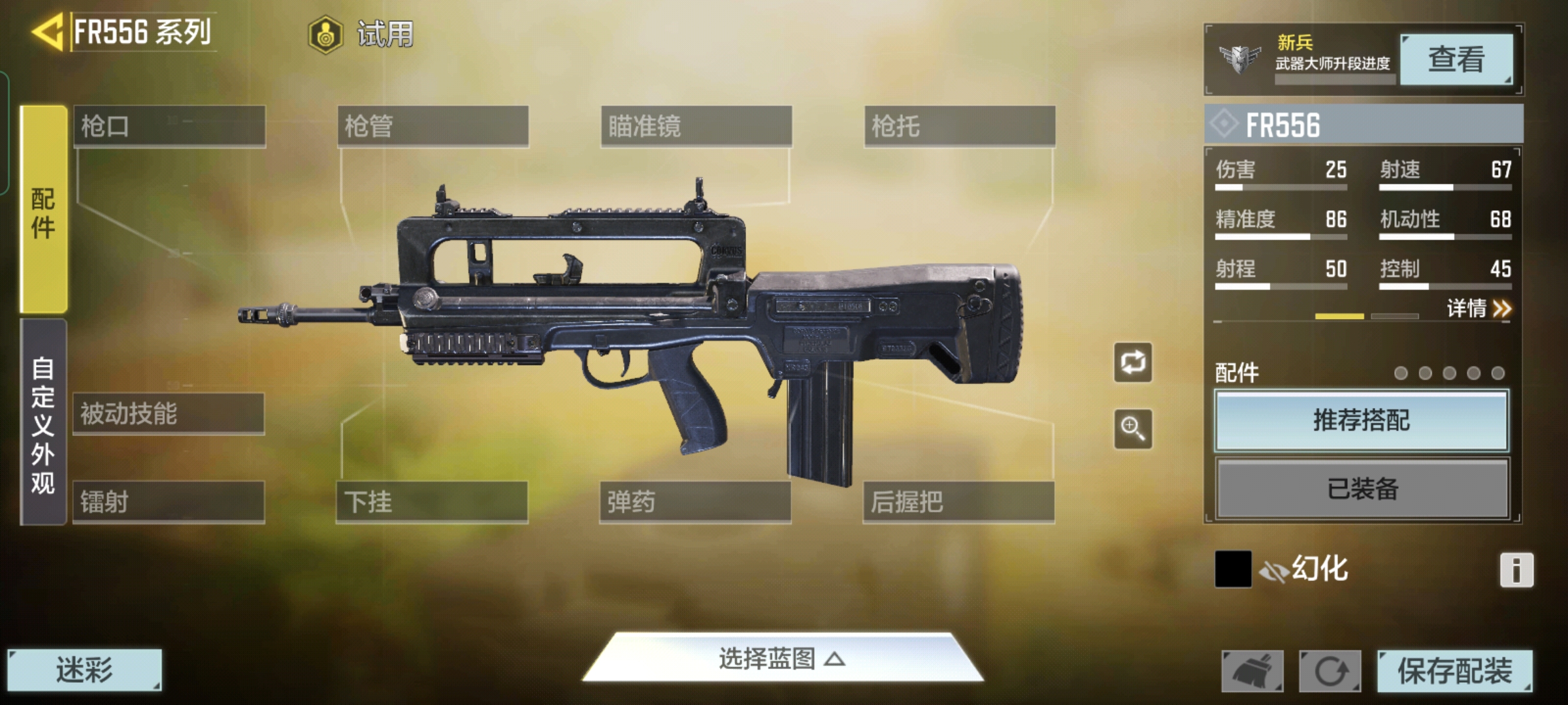 配件主要还是以减少垂直后座为前提进行,这枪水平后坐力还行,枪管可以换成后握把,是唯一能带斑点握把皮的步枪,因为这枪精度最高,可以支得住斑点握把皮糟蹋,而且这枪的跑射延迟确实非常高要多加熟悉30发子弹够用了,本来这把枪精度就高很少马枪,枪口补偿器和消焰器看自己的爱好,都可以,