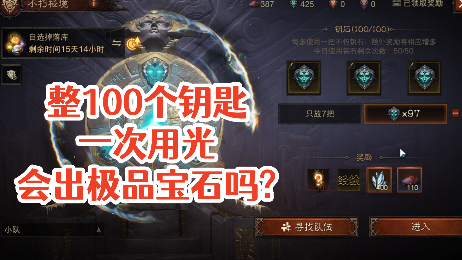 整100个钥匙!一次用光!会出极品宝石吗?暗黑破坏神不朽创作者计划