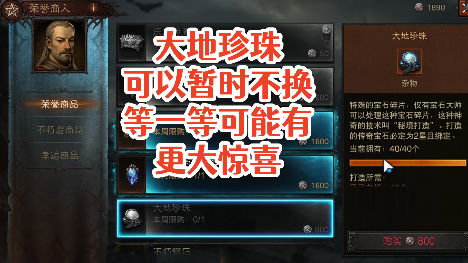 大地珍珠可以暂时不换!等一等可能有更大惊喜!暗黑破坏神不朽