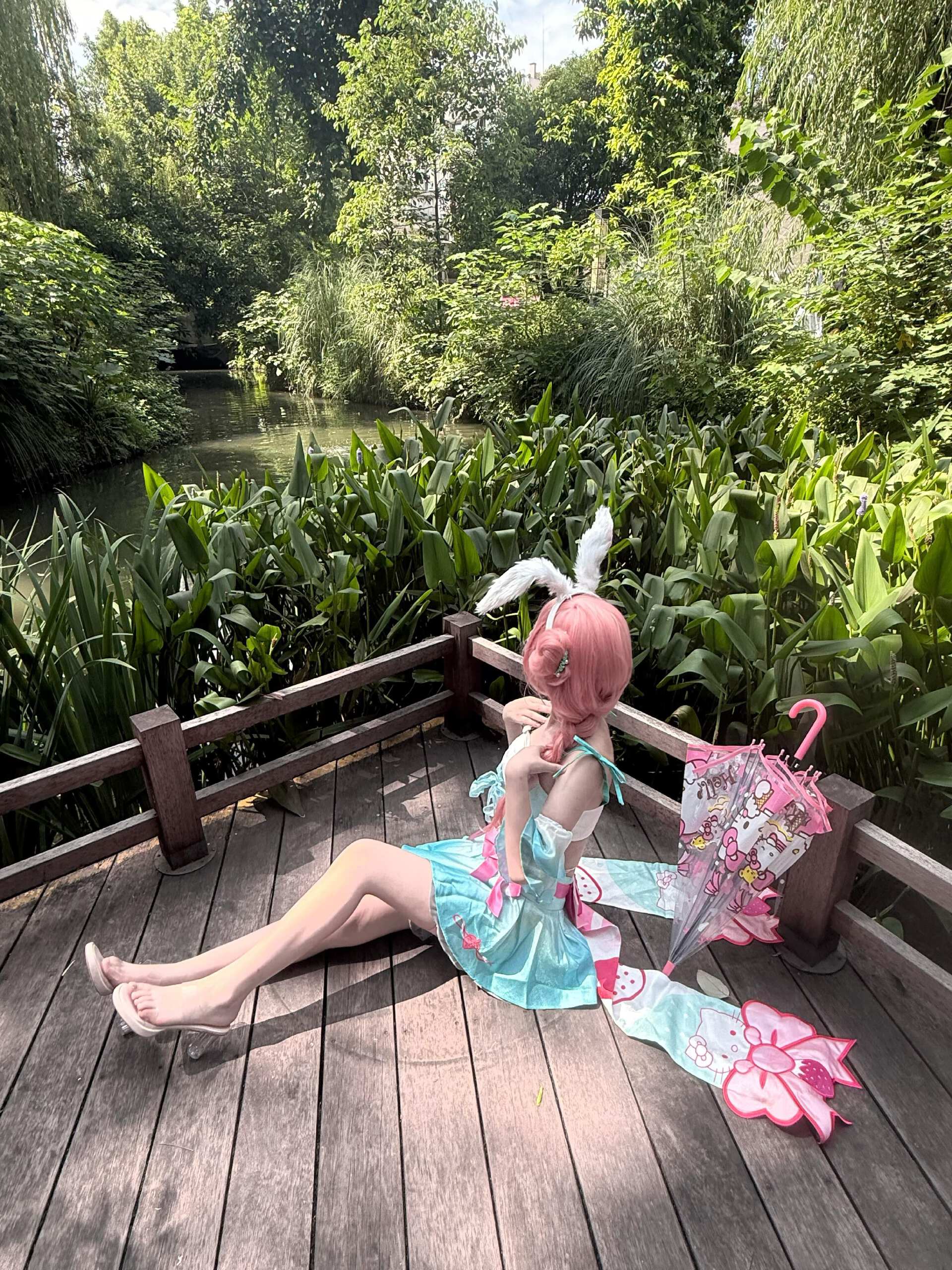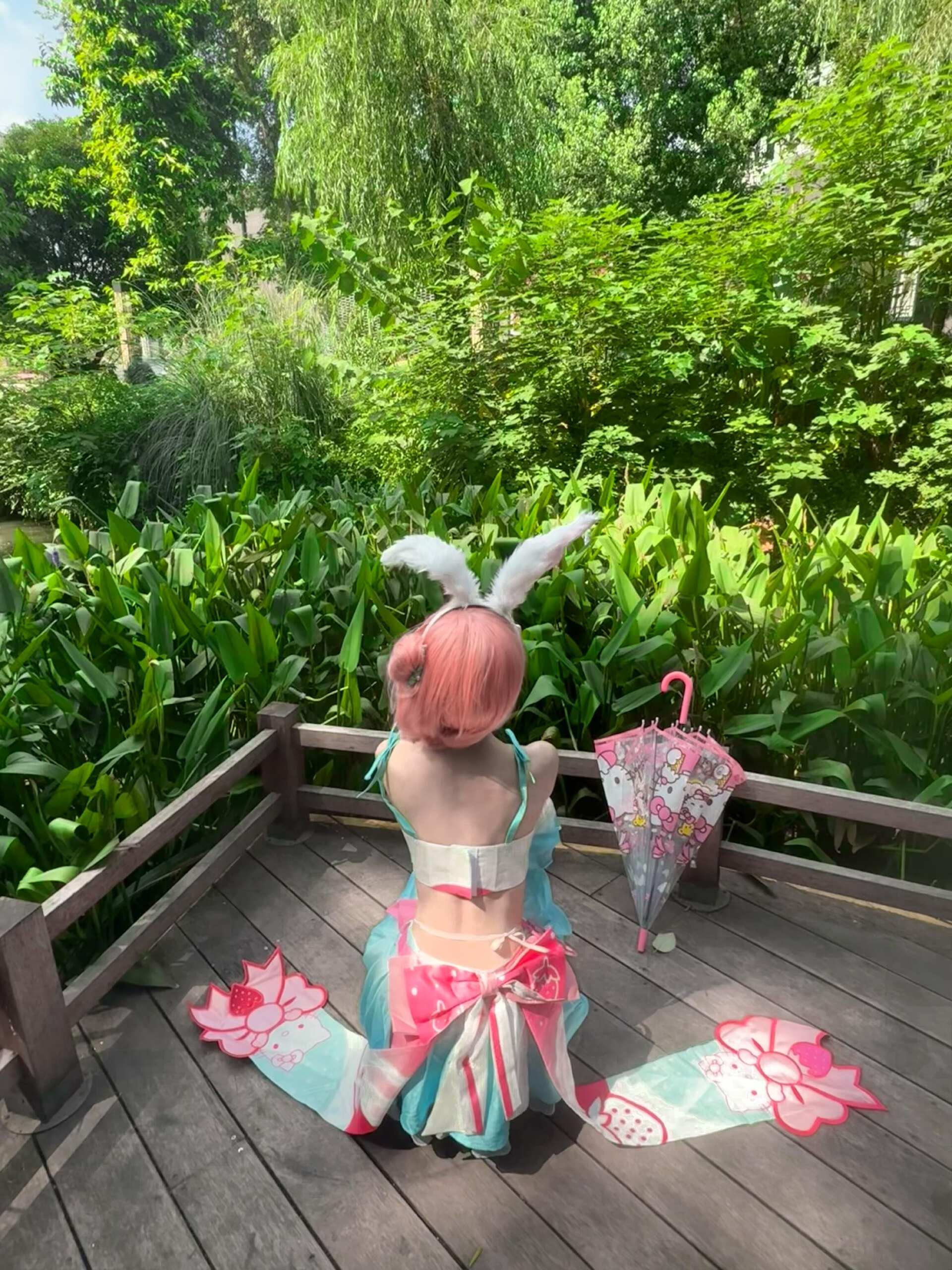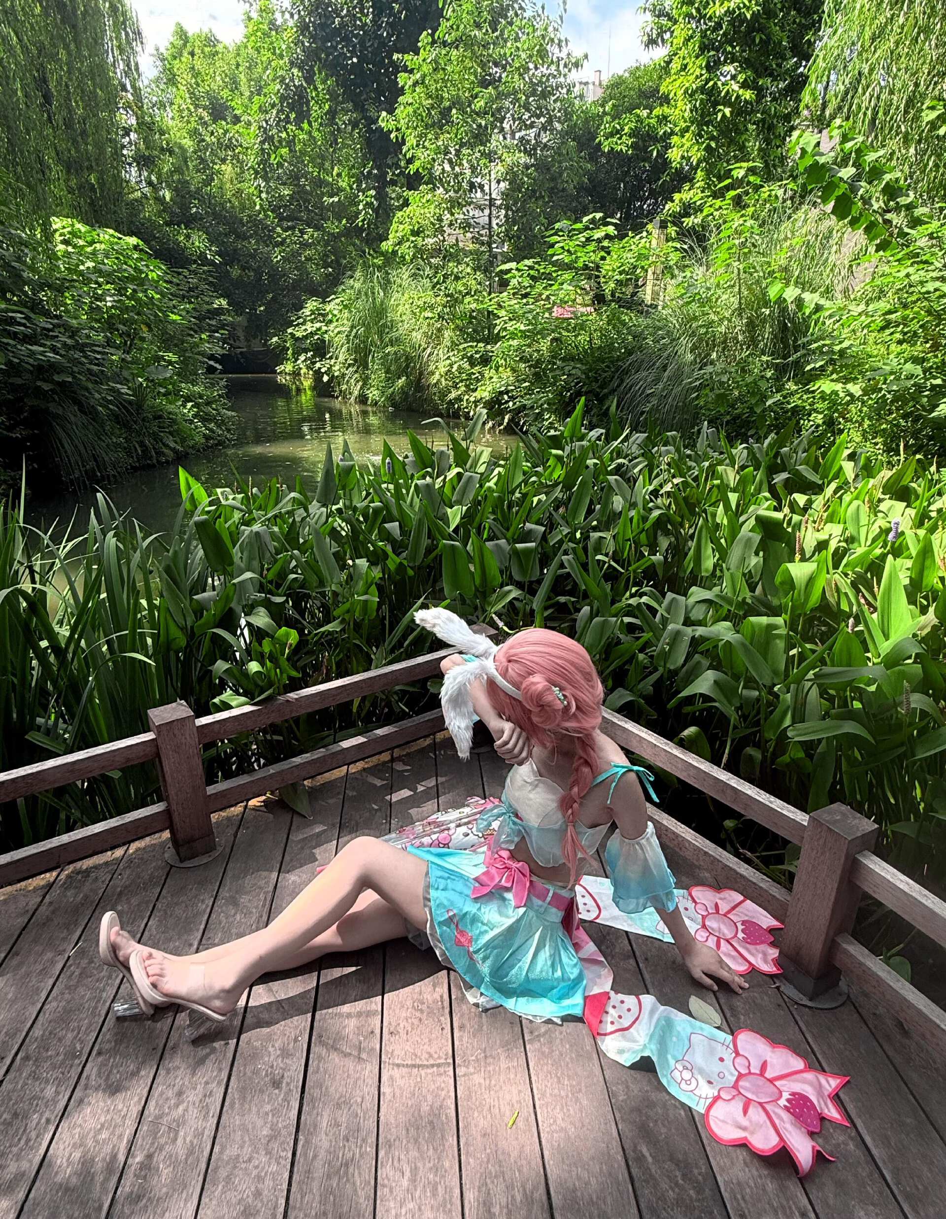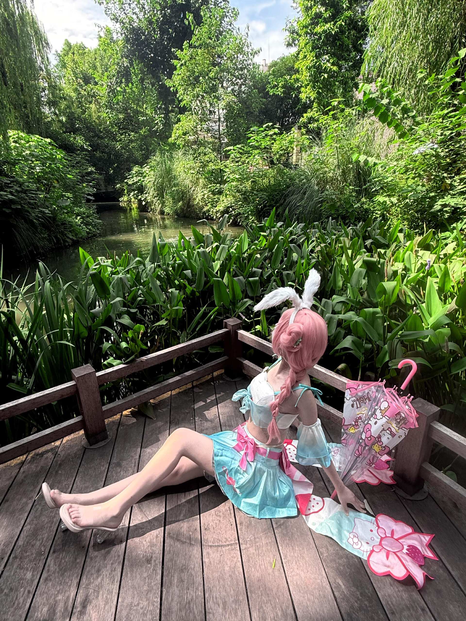 然后再来看一下第4张照片,在这张照片中,只出现了我们接下来要说的主角也就蜜橘之夏Hello Kitty联动星元套装cosplay。