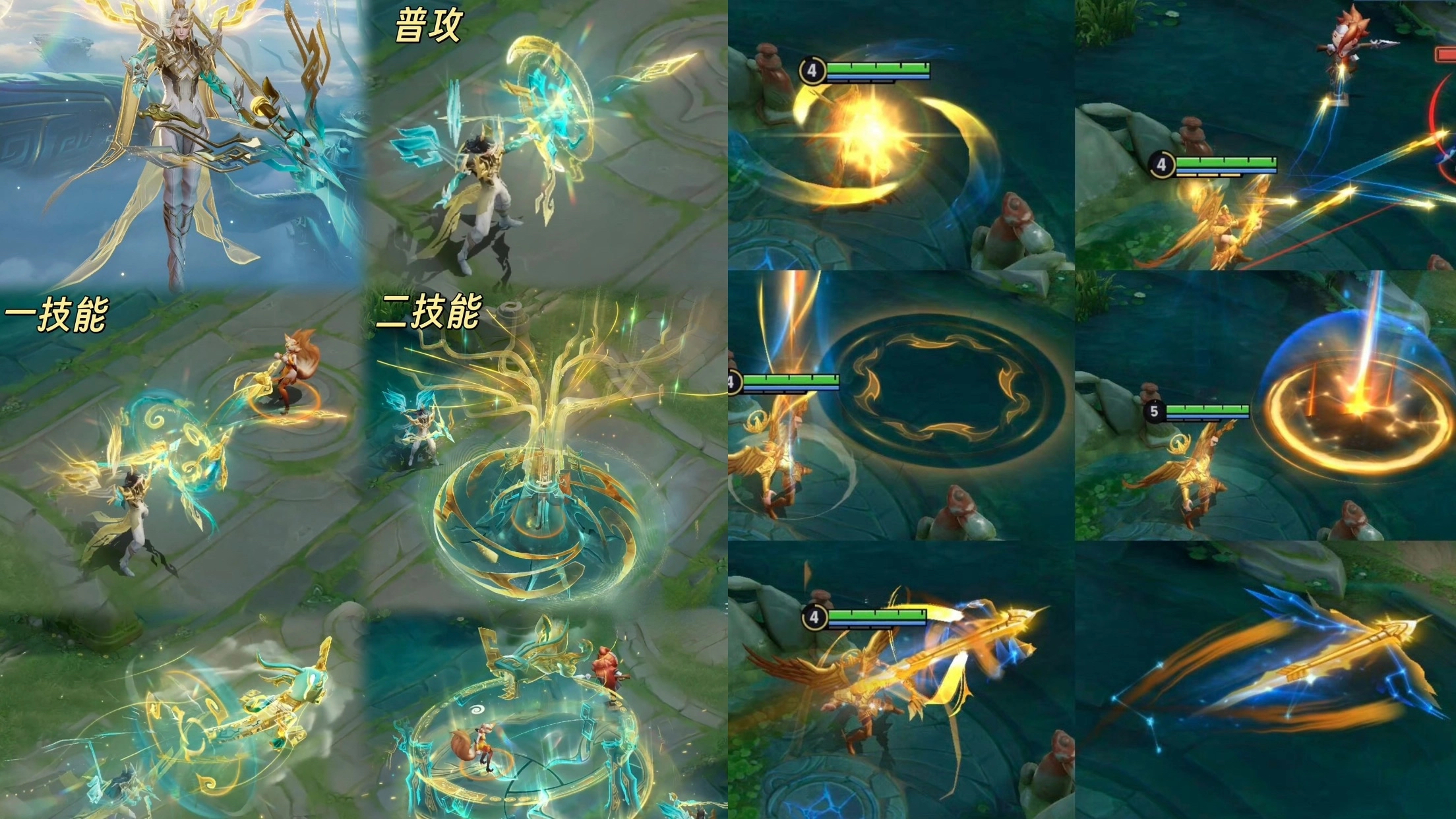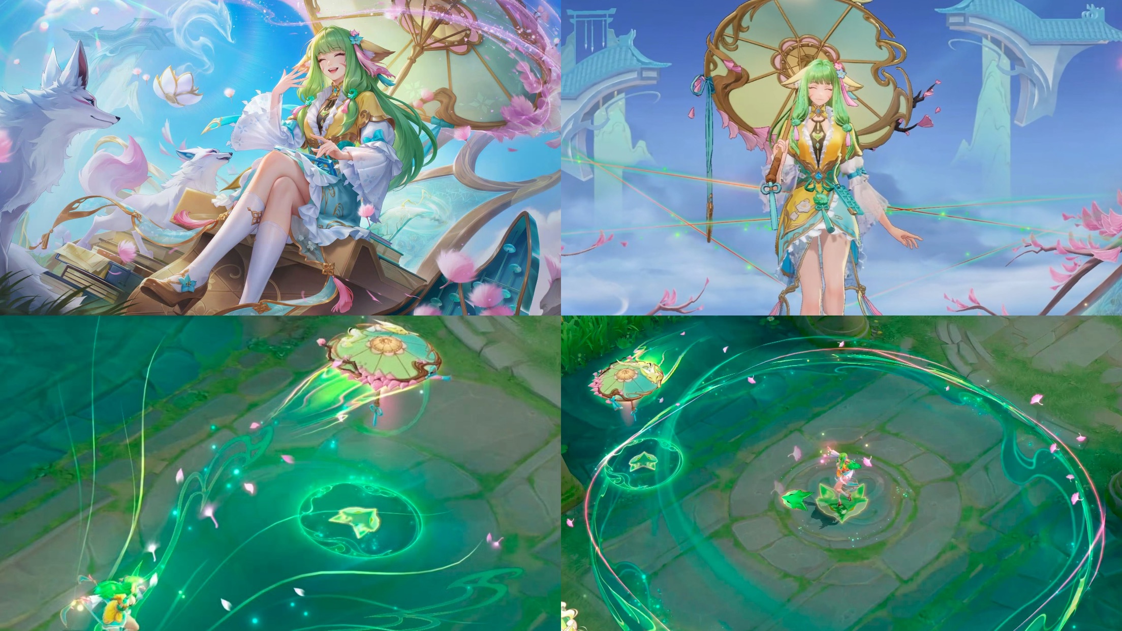 这款皮肤的技能特效非常简单,给人一种小清新的感觉,主要是以绿色为主,有一些花瓣元素,这个特效展现感觉很舒适,视觉效果也很好,但效果并不是很高级,特效相对来说比较简单。