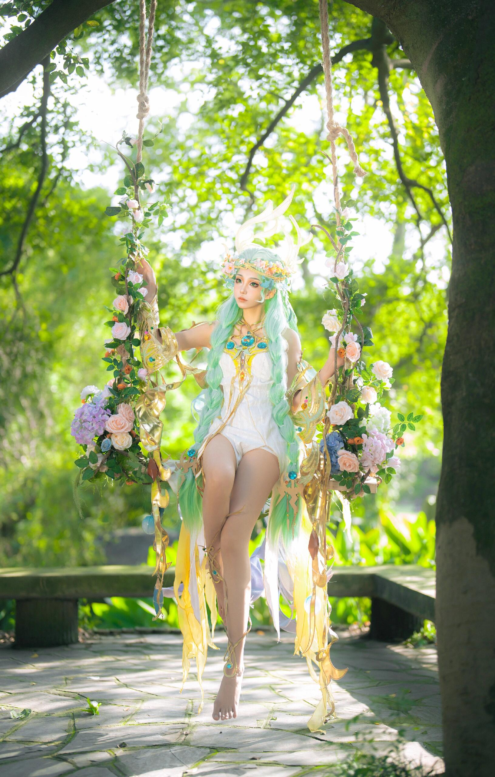 如图所示,我们首先来看一下第一张照片,首先印度眼帘的就是一位小姐姐坐在荡秋千上面,没错,她正是我们今天的主角,可以看到小姐姐身穿貂蝉皮肤的精致服装,整体的设计非常还原。