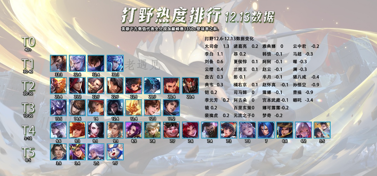 欢迎来到每周日更新的五路热度排行,后续的每周都会有详细的数据对比,让大家能够更清楚的了解到版本的变化。