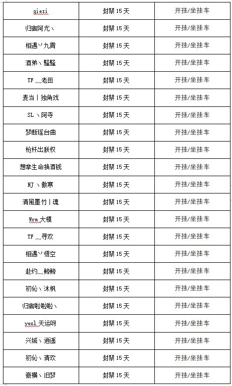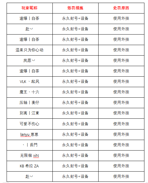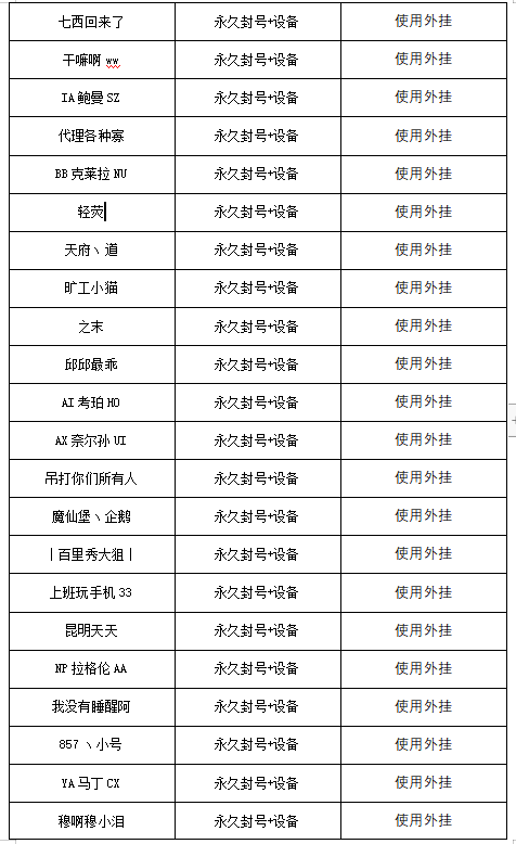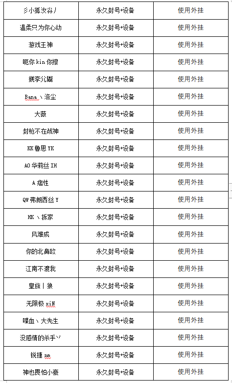 启妹想让更多的玩家感到安心,为此我们决定每周五公布外挂封号名单。让我们的净化行动“透明化”。