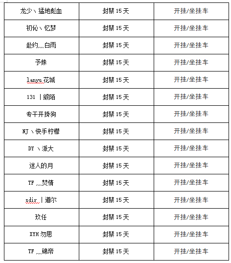 以下是3月6日——3月12日部分严重违规玩家名单,玩家均已受到惩罚。