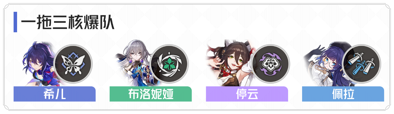 ① 一拖三核爆队:希儿、布洛妮娅、停云、佩拉
