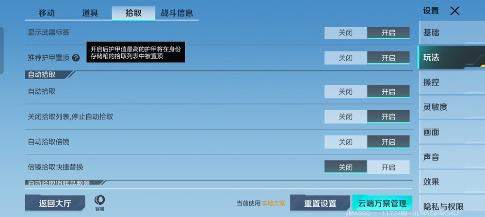 玩法版块的拾取分区,有一项默认开启的推荐护甲置顶功能。当前护甲绝对值最高的护甲将在身份存储箱的拾取列表中被置顶,帮助玩家实现快速换甲,迎接即将到来的下一队敌人。在局势瞬息万变的能爆基地中,这项功能有时能起到奇效。