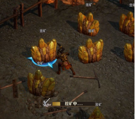 3、选中并点击对应矿石堆,当界面出现“挖矿中”进度条时,即开始挖矿。